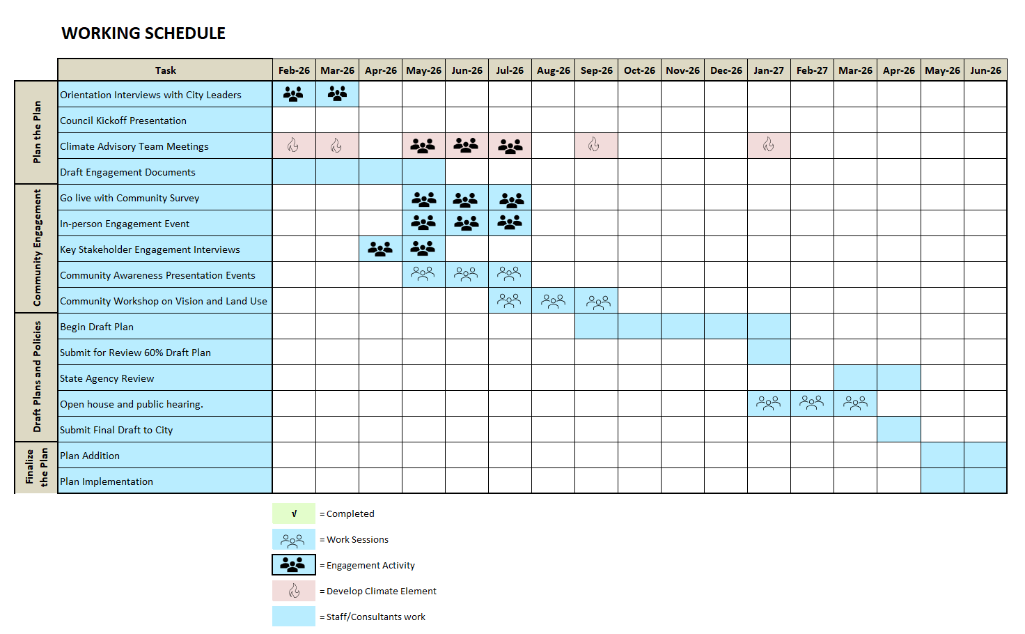 The comprehensive plan should reflect the community’s needs, as defined by the community. In the spring and summer of 2026, there will be a lot of in-person and virtual formal opportunities for everyone. Additionally, you can sign up for the newsletter or submit your questions, comments, or concerns through the Contact Us button.